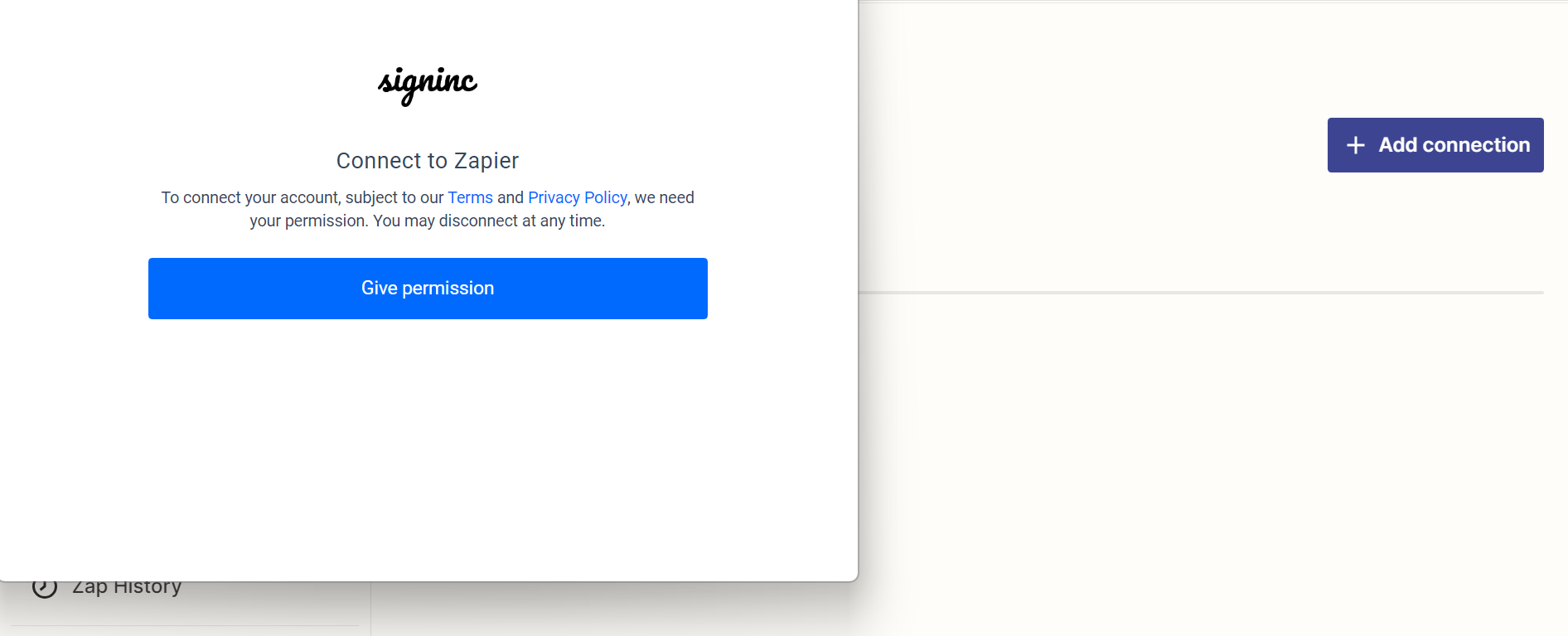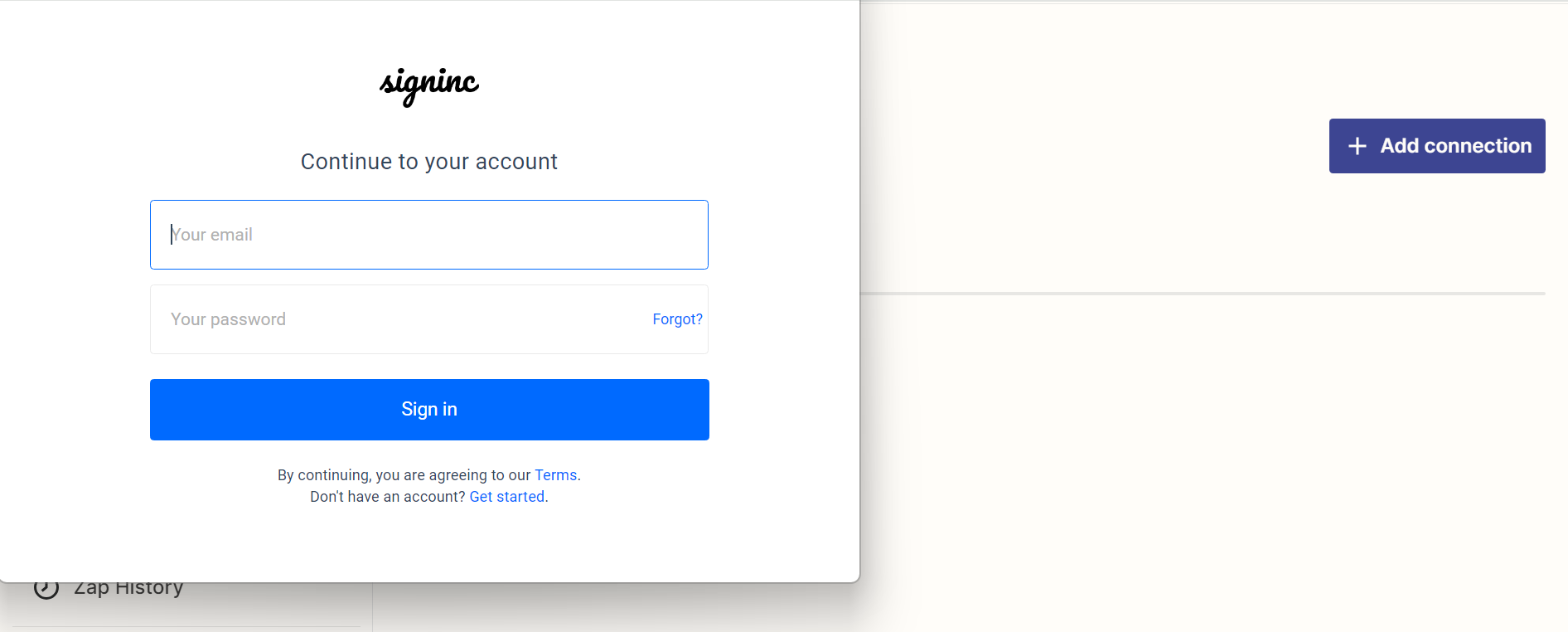 3.4 Sign in with your Signinc credentials. If you're already signed in to Signinc, then you will be taken directly to the next step automatically.